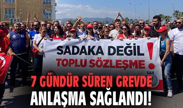 DİSK Genel-İş İzmir 1, 2, 3 ve 9 Nolu Şubelerde örgütlü 23 bin İZENERJİ, İZELMAN ve EGEŞEHİR A.Ş işçisinin grevi, 7'ncin gününde bitti. İzBB bürokratları ve SODEM-SEN'in dün gece sendikaya ilettiği yüzde 30 zam ve yüzde 19'luk enflasyon farkı kabul edildi.DİSK'in, emekçilerin iradesini ölçmek yerine sıradışı bir şekilde Kültürpark 1 Nolu Hol önünde toplayarak teklifi sözlü olarak tekrar etmesi ve 'Kabul edenler?' şeklinde oylaması dikkat çekti. Hol önündeki emekçilerin büyük çoğunluğu teklifin kabul edilmesi yönünde irade gösterdi.