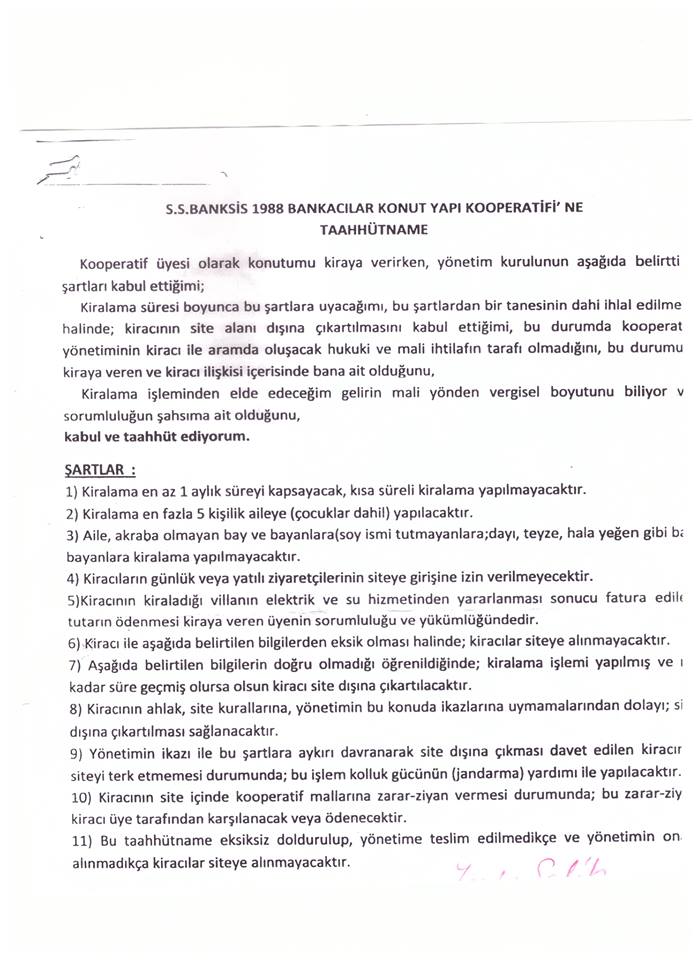 Evlerini kiraya verenlere site yönetiminin uyguladığı ve imzalattığı taahütname "Hangi devirde yaşıyoruz" dedirtecek cinsten. Öyle ki bu maddelerden dikkat çekenler şöyle;