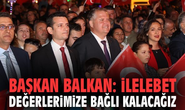 BAŞKAN BALKAN: “İLELEBET DEĞERLERİMİZE BAĞLI KALACAĞIZ”“Tam bir asırdır Cumhuriyetle aydınlanıyoruz, 102 yıldır aynı ışığın peşindeyiz.” diyen Urla Belediye Başkanı Selçuk Balkan, “Eşitliğin, özgürlüğün, adaletin sesi olduk; olmaya da devam edeceğiz. Yüreğimizde Mustafa Kemal’in ateşi var. Tam bağımsız, laik, demokratik, çağdaş Türkiye Cumhuriyeti’nin evlatlarıyız.