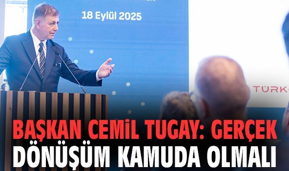 “GERÇEK DÖNÜŞÜMÜN KAMUDA OLMASI GEREKİYOR”İklim krizinin on yıllar önce sinyaller vermesine karşın ciddiyetinin bugün farkına varıldığını söyleyen Başkan Tugay, sorunun çözümü için topyekûn mücadele çağrısı yaptı. Başkan Tugay, “İzmir Büyükşehir Belediyesi olarak çok ciddi bir dönüşüm çalışması içindeyiz. Sürdürülebilirliği ve verimliliği çok önemseyerek çalışıyoruz. Esas sorunun kamuda, devlette olduğunu söylemek zorundayım. Kamu kurumlarında verimlilik gözetilmeli. Gerçek dönüşümün kamuda olması gerektiğini düşünüyorum. Belediyeler bu konuda öncü olabilir. Belediye gerçek bir dönüşüm sağlarsa birilerinin, farklı bir şeyler olabileceğine dair kanaati gelişir. Bu kolay bir şey değil. Zor, ama yapılabilir. Ben bütün İzmirlilerin desteğini talep ediyorum. Bizler belirli süreler için bu görevlerdeyiz. Ama İzmir, bu geleneği bir şekilde oluşturmalı ve sahip çıkmalı” ifadelerini kullandı.İNCİ: “İKİZ DÖNÜŞÜM EKONOMİK BÜYÜMEYİ CANLANDIRIR”İkiz dönüşüm vizyonunun Türkiye’de üretkenlikte gözlenen düşüş eğilimini tersine çevirmek, ekonomik büyümeyi canlandırmak ve ülke geneline daha eşit şekilde yaymak için önemli bir araç olduğunu söyleyen TÜRKONFED Yönetim Kurulu Başkan Yardımcısı Perihan İnci, “Dünya, sürdürülebilirlik ve teknoloji ekseninde yeniden şekillenirken ülkemizin bu alanlardaki rekabetçiliğini artırmak ve KOBİ’lerimizin kapasite gelişimini desteklemek hayati bir ihtiyaç olarak öne çıkıyor. İkiz Dönüşümde Yeni Ufuklar Projesi, TÜRKONFED olarak bu yöndeki çabamızın somut çıktılarından biri. Garanti BBVA’nın kritik desteğini de arkamıza alarak, Anadolu’nun farklı bölgelerindeki KOBİ’lerin iş stratejilerini günümüz gereklilikleriyle uyumlu bir biçimde yeniden şekillendirmesine rehberlik ediyoruz. İşletmelerin sürdürülebilirlik hedeflerine ulaşmasına ve dijitalleşme ile küresel pazarların gerektirdiği esneklik ve yenilikçiliği kazanmasına destek oluyoruz” dedi.