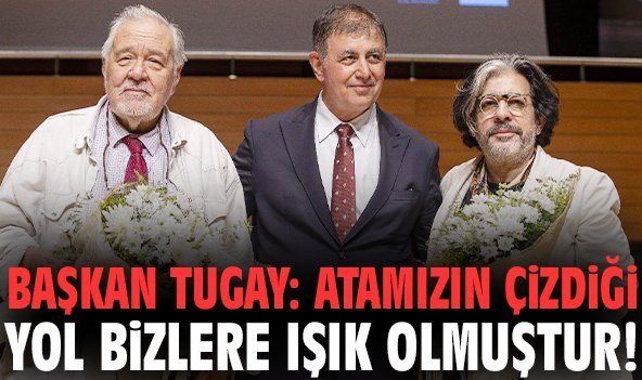 TUGAY: ATA’MIZIN ÇİZDİĞİ YOLDAN YÜRÜYORUZSöyleşinin açılış konuşmasını yapan İzmir Büyükşehir Belediye Başkanı Dr. Cemil Tugay, “Biz Atatürk'ü kaybetmiş olsak da manevi olarak onunla beraber yaşıyoruz. Hep böyle hissediyoruz. Ona karşı duyduğumuz saygı ve sevginin temelinde, aslında onun bize milletimize, ülkemize duyduğu saygı ve sevgi var. Biz sadece onun bize olan inancına karşılık vermeye çalışan insanlarız. Onun önderliği, çizdiği yol, koyduğu hedefler her zaman bize ışık olmuş, rehberlik etmiştir. Bizler zaman zaman onları konuşarak, o günleri hatırlayarak tekrar tekrar nasıl bir yolda yürüdüğümüze bakıyoruz. 30 Ağustos'u bir bayram gibi kutlarken, ne kadar zorlu şartlarda bu savaşın kazanıldığını idrak etmek zorundayız. 'Umutsuz durumlar yoktur, umutsuz insanlar vardır' diyen o büyük liderin mücadele arkadaşlarıyla birlikte inancından bir gram dahi ödün vermeden bütün dünyaya meydan okurcasına o savaşı kazanması, ‘bugün biz bu ülkenin geleceğini değiştiremeyiz, içinde yaşadığımız kötü günleri düzeltemeyiz’ diye umutsuzluğa kapılan insanların bir şeyleri hatırlaması gerektiğini düşündüğüm için bunları söylüyorum. O günü o günde bırakmamamız gerekir” dedi.