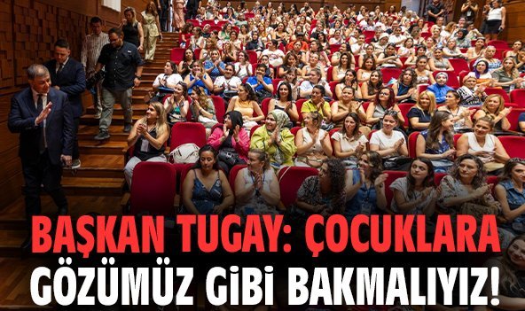 “GÖZÜNÜZ GİBİ BAKMALISINIZ”Törende konuşan İzmir Büyükşehir Belediye Başkanı Dr. Cemil Tugay, kamu adına çalıştıklarını belirterek, “Bizler oy için değil sistemin içindeki bozuklukları düzeltmek için çalışan insanlarız. Belediyeler, devlet, kâr amacı gütmeyen kuruluşlardır. 4.5 milyon nüfuslu bir şehirde okul öncesi yaş grubu çocuklarımızın sayısı yüz binlerce. Çocuklarımızın okul öncesi eğitimini, bakımını karşılayacak yeterli tesise ülkemiz sahip mi, buna bakmamız lazım. Özel anaokulları var, devletin anaokulları var ama ihtiyacın pek azını karşılıyor. Pek çok çocuk bir yakınına, bazıları da ailelerin büyük çocuğunun eline emanet ediliyor. Çalışmayan anneler de günlük işlerle uğraşırken çocukla ilgilenemiyor. Bizler daha fazla çocuğun okul öncesi eğitimden yararlanmasını istiyoruz. Merkezlerimizdeki aylık ücretleri 10 bin liradan 5 bin liraya düşürdük, bu sene ise 4 bin lira yaptık. Her bir kuruş çok değerli. Her bir kuruşun üzerinde yüz binlerce çocuk ve milyonlarca insanın hakkı var. Onun için en iyisi olmak zorundasınız. Onun için size emanet edilen çocuklara kapıdan içeri girdiği andan itibaren gözünüz gibi bakmalısınız. Onları o kapıdan çıktığı gün karşılaşacağı dünyaya hazırlamanız gerekiyor. Buradan zıpkın gibi çocuklar çıkarmamız gerekiyor” diye konuştu.