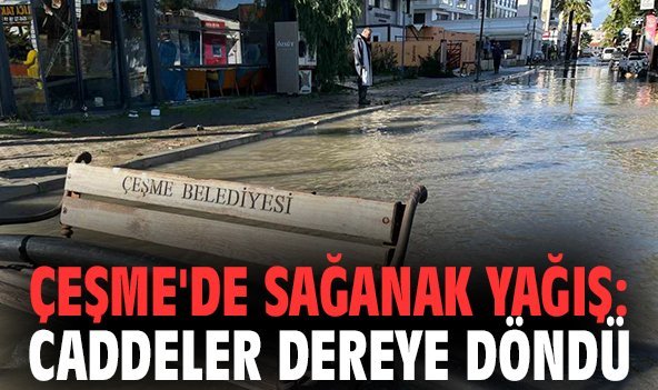 Turistik ilçe Çeşme’de, öğle saatlerinde başlayan sağanak yağış hayatı olumsuz etkiledi. Yağışın şiddetini artırmasıyla birlikte ilçedeki birçok cadde ve sokak yağmur sularına teslim oldu. Yağışla beraber altyapı sisteminde yaşanan yoğunluk nedeniyle rögarlarda taşmalar meydana geldi. Yağmur sularının tahliye edilememesi sonucu cadde ve sokaklar adeta dere yatağına dönüştü. Su birikintilerinin oluştuğu yollarda trafik akışında aksamalar yaşanırken, sürücüler, suyla kaplanan yollarda araçlarıyla ilerlemekte güçlük çekti.