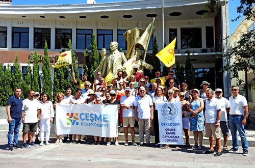 CHP Çeşme İlçe Örgütü, İzmir Kent Konseyi, Çeşme Kent Konseyi ve çok sayıda sivil toplum kuruluşu ve yurttaş, “DSİ Vanaları Aç” sloganıyla Çeşme Cumhuriyet Meydanı’nda bir araya geldi. Basın açıklamasında hem DSİ’nin süreci sürüncemede bırakmasına sert eleştiriler yöneltildi.