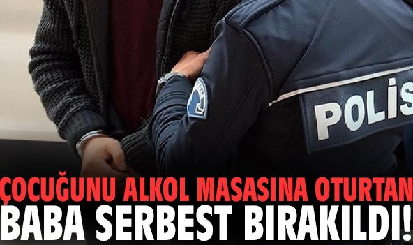 Çocuğunu alkol masasına oturtan baba serbest bırakıldı!