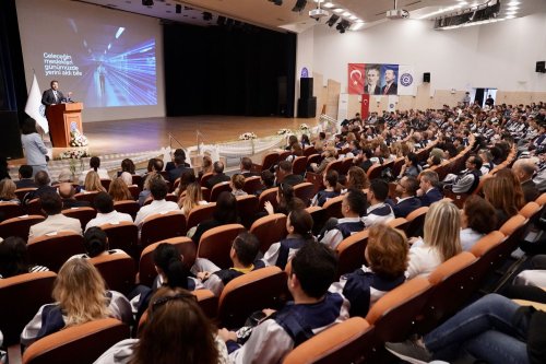 MÖTBE Kültür Salonunda gerçekleştirilen tören, saygı duruşu ve İstiklal Marşı’nın okunmasının ardından Ege Üniversitesi tanıtım filminin gösterimi ile başladı. Akademik yılın ilk dersini veren Turkcell Genel Müdürü Dr. Ali Taha Koç, “Bugün sizlerle birlikte olmamıza vesile olan Rektörümüz Prof. Dr. Necdet Budak’a teşekkür ediyorum. Geleceği idare edebilmek, onu yönetebilen, kökleri geçmişten gelen, dalları geleceğe uzanan idealist bir nesilden geçiyor. Ülkemizin bu idealist nesle sahip olduğunu da TEKNOFEST kuşağında hep beraber gördük. Yaklaşık bir ay önce toplam 1.1 milyon ziyaretçi İzmir’de TEKNOFEST’e katıldı. Türkiye’nin geleceğe dokunan neslinin TEKNOFEST’e olan ilgisini ve kendilerini geliştirmeyi öğrendiklerini hep birlikte gördük” dedi.