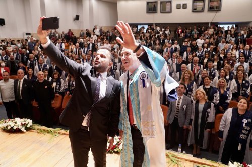 Öğrenciler adına konuşma gerçekleştiren Ege Üniversitesi Öğrenci Konseyi Başkanı Kadir Gülhan, “Cumhuriyetimizin 100. yılında milli değerlerine bağlı ülkesi ve milleti için çalışıp üreten bireyler olmak için var gücümüzle çalışacağız. Öğrenci odaklı yönetim anlayışı ve üniversitemize kazandırdığı öğrenci odaklı uygulamalarıyla huzurlu ve güvenli bir aile ortamını bizlere sunan ve baba şefkatini bizlerden asla esirgemeyen Sayın Rektörümüz Prof. Dr. Necdet Budak’a şükranlarımı sunuyorum” diye konuştu.