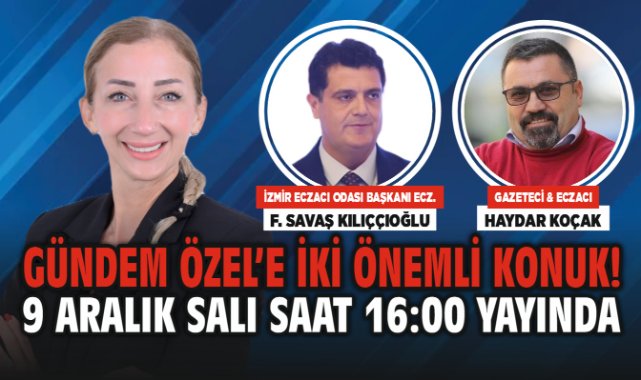 Gazeteci–Eczacı Haydar KoçakSağlık sektörü, eczacılık alanındaki güncel gelişmeler ve Türkiye gündemine dair önemli değerlendirmelerin yapılacağı program, izleyicilere kapsamlı bir perspektif sunacak.9 Aralık Salı – Saat 16:00