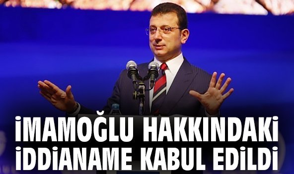 İstanbul Büyükşehir Belediye (İBB) Başkanlığı görevinden uzaklaştırılarak tutuklanan Ekrem İmamoğlu hakkında kurduğu suç örgütü ile yolsuzluk yapıldığı iddiasına ilişkin hazırlanan iddianame, gönderildiği İstanbul 40. Ağır Ceza Mahkemesi'nce kabul edildi. Henüz tensip işlemlerinin yapılmadığı öğrenilirken, duruşma tarihinin önümüzdeki günlerde mahkemece belirlenmesi bekleniyor.