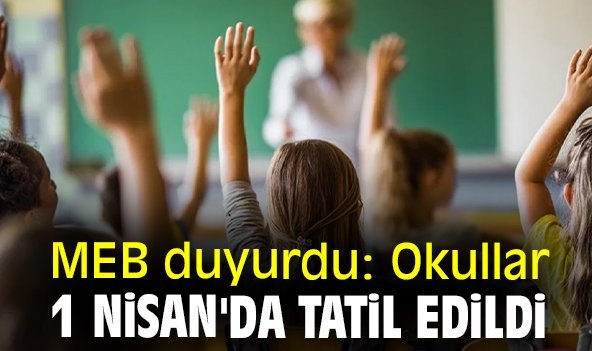 Milli Eğitim Bakanlığı'nın 81 ilin valiliklerine gönderdiği yazıya göre, 31 Mart Mahalli İdareler Genel Seçimleri dolayısıyla okullar 1 Nisan Pazartesi günü tatil edildi. Gönderilen yazıda, seçim sonrası oy sayım işlemlerinin geç saatlerde bittiği ve bunun okulların aynı gün içerisinde eğitim öğretime hazır hale getirilmesini engellediği belirtildi. Bakanlık, eğitim kurumlarını hazır hale getirmek amacıyla 1 Nisan Pazartesi günü okulların tatil edildiğini duyurdu.