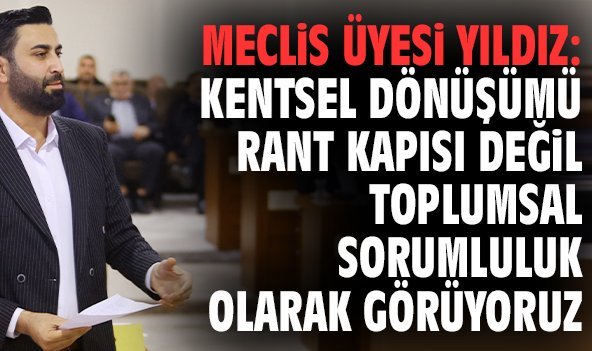 MEDYA EGE - Cumhuriyet Halk Partisi (CHP) Karabağlar Belediye Meclis Üyesi Serkan Yıldız, 2025 yılının son meclis toplantısının ardından kentsel dönüşüm ve ekonomik koşullara ilişkin değerlendirmelerde bulundu. Yıldız, Karabağlar’ın geleceğini güvenli, dayanıklı ve yaşanabilir bir yapıya kavuşturacak çalışmaların hız kazandığını ifade etti.Kentsel dönüşüm ofisinin açılmasıyla birlikte somut adımların atıldığına dikkat çeken Yıldız, hedeflerinin depreme dayanıklı, nefes alan ve yaşamı kolaylaştıran alanlar üretmek olduğunu belirtti. Yıldız, “Bu kentte yaşayan herkesin hakkı, sağlam bir yuva ve huzurlu bir yaşamdır” dedi.Ülkenin içinden geçtiği ağır ekonomik şartların Karabağlar halkını her geçen gün daha fazla zorladığını vurgulayan Yıldız, artan maliyetler ve daralan gelirlerin vatandaşların yaşamını güçleştirdiğini söyledi. Meclis üyesi Yıldız, kentsel dönüşümü bir rant kapısı değil; halkın yükünü hafifletecek, yaşam kalitesini yükseltecek bir toplumsal sorumluluk olarak gördüklerini belirtti.Serkan Yıldız, hem depreme karşı daha güçlü bir Karabağlar kurmak hem de ekonomik belirsizlikler içinde halkın nefes alabileceği bir düzen oluşturmak için çalıştıklarını ifade ederek, “Karabağlar’ın geleceğini başkalarının inisiyatifine bırakamayacak kadar önemsiyoruz” sözleriyle açıklamasını tamamladı.