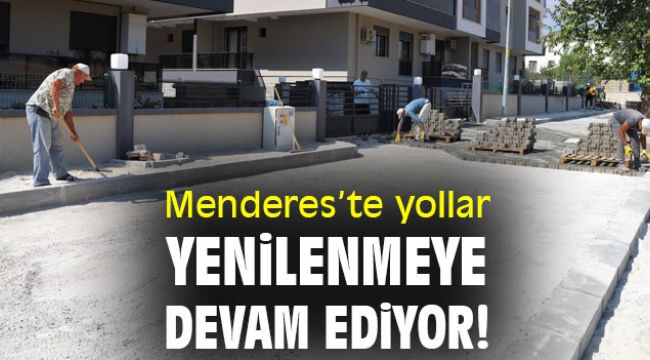 Menderes Belediyesi'nin İzmir Büyükşehir Belediyesi ile iş birliği ile yürüttüğü yol ve kaldırım yenileme çalışmaları hız kesmeden sürüyor.