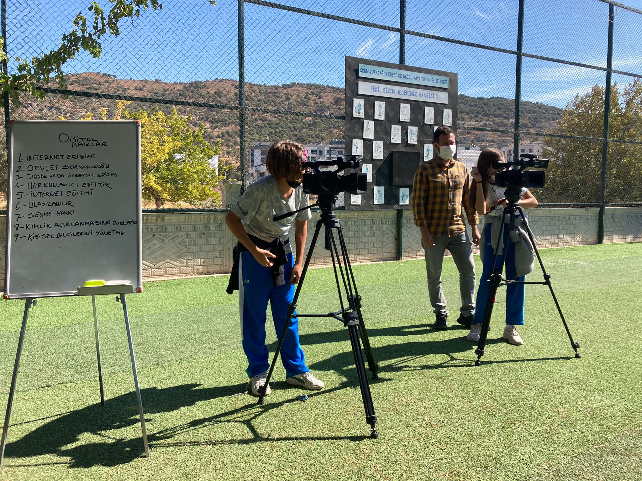 Medya atölyesinde küçük bir TV stüdyosu kurup hem dijital dünyayı tanıtıyor hem de medya okuryazar yetiştiriyoruz.