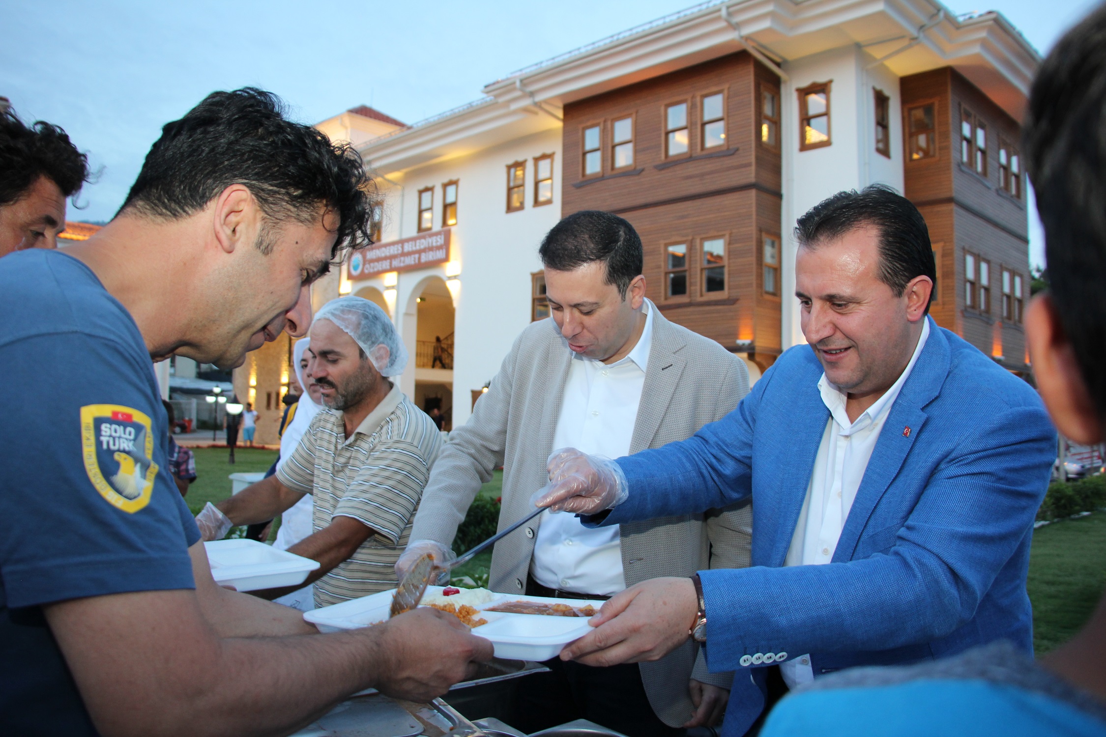 Menderes Belediyesi tarafından 11 ayın sultanı Ramazan kapsamında kurulan iftar sofralarının adresi Özdere oldu. Belediye tarafından yapımı tamamlanan Özdere Meydanı’nda gerçekleşen iftara vatandaşlar büyük ilgi gösterdi. Bin 500 kişilik yemeğin dağıtıldığı iftara AK Parti İzmir Milletvekili Atilla Kaya da katıldı.