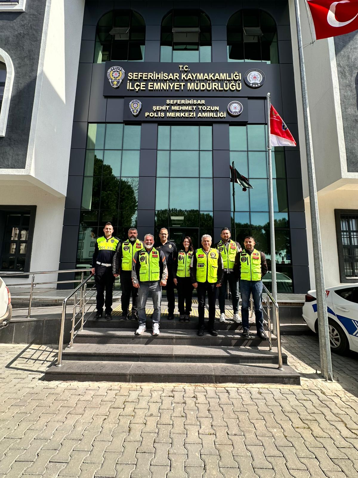 Seferihisar’da motosiklet kültürünün geliştirilmesi ve güvenli sürüş bilincinin artırılması amacıyla çalışmalarını sürdüren Seferihisar Riders Kulübü Başkanı Ozan Acar ve üyeleri, İlçe Emniyet Müdürü Murat Dokumacı’yı makamında ziyaret etti. Görüşmede, ilçedeki motosiklet sürücülerine yönelik eğitim faaliyetleri ve trafik güvenliği konuları ele alındı.