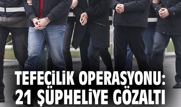 İstanbul’da bir iş adamı, iddiaya göre ekonomik sıkıntıya düşünce tefecilere başvurdu. Yüksek faizli borç para aldığı tefecilere borcunu bir süre sonra ödeyen şahıs, şebekenin elinden kurtulamadı. İddiaya göre yüksek faizli aldığı borçlarını ödemesine rağmen tefeciler; 3 daire, 1 dükkan, 1 arsa ile 15 aracını şahıstan zorla aldı. Taşınır ve taşınmaz varlıkları elinden alınan kişi, Anadolu Adliyesine giderek tefecilerden şikayetçi oldu. Yapılan suç duyurusu üzerine harekete geçen İstanbul Emniyet Müdürlüğü Mali Suçlarla Mücadele polisi, tefecileri teknik ve fiziki takibe aldı.Anadolu Cumhuriyet Başsavcılığı koordinesinde yürütülen çalışmalarda; müştekinin, yaşadığı maddi sıkıntılar nedeniyle şüphelilerden faizle borç para aldığı, borçlarını ödemesine rağmen 3 daire, 1 dükkan, 1 arsa ile 15 adet aracının şüpheliler tarafından elinden alındığı yönündeki beyanları üzerine zanlıların yakalanması için bu sabah 3 ilde eş zamanlı operasyon düzenledi. İstanbul merkezli olmak üzere Sakarya ve Iğdır illerini de kapsayan 3 ilde, örgütlü tefecilik suçuna yönelik yapılan baskınlarda 21 şüpheli gözaltına alındı. Gerçekleştirilen operasyon kapsamında yürütülen tahkikat işlemlerinin devam ettiği aktarılırken, gözaltı sayısının artabileceği öğrenildi.