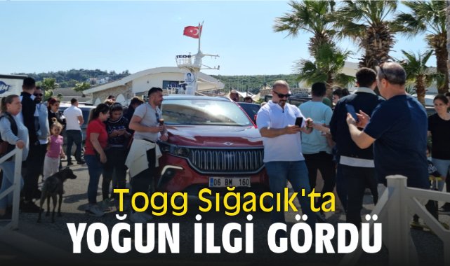 AK Parti Seferihisar İlçe Başkanı Ahmet Aydın’ın girişimleri ile Sığacık’a getirilen 06 BM 160 plakalı ve Türk Bayrağı rengine sahip TOGG T10X araç Sığacıklılardan ve Pazar günü Sığacık’ta deniz kenarında zaman geçiren vatandaşlardan yoğun ilgi gördü. Teos Marina’nın girişinde sergilenen TOGG ile birlikte fotoğraf çektirmek isteyen vatandaşlar yoğun kalabalık oluşturdu.