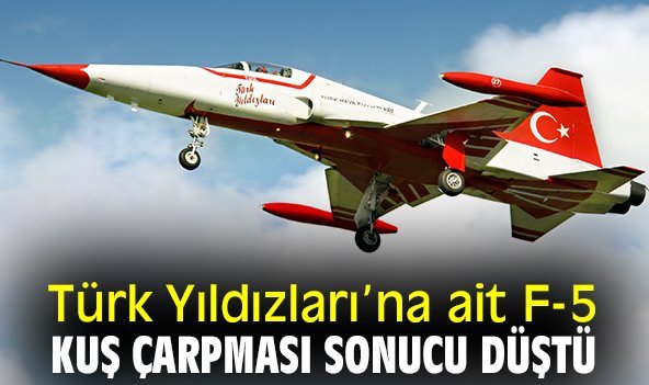 Konya'da Türk Yıldızları’na ait F-5 tipi uçak kuş çarpması sonucu motorların durması nedeniyle düştü. Pilot uçaktan atlayarak kurtuldu.