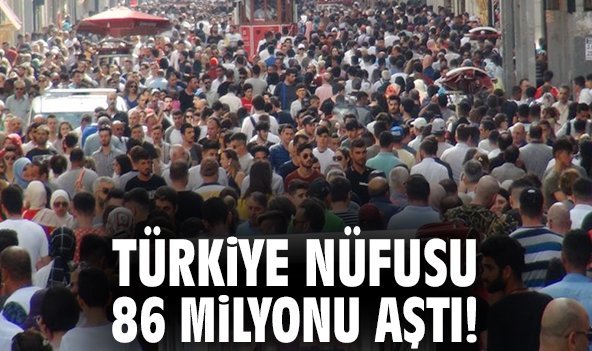 Türkiye İstatistik Kurumu (TÜİK), 2025 yılı Adrese Dayalı Nüfus Kayıt Sistemi sonuçlarını açıkladı. Buna göre, Türkiye'de ikamet eden nüfus, 31 Aralık 2025 tarihi itibarıyla bir önceki yıla göre 427 bin 224 kişi artarak 86 milyon 92 bin 168 kişi oldu. Erkek nüfus 43 milyon 59 bin 434 kişi olurken, kadın nüfus 43 milyon 32 bin 734 kişi oldu. Diğer bir ifadeyle toplam nüfusun yüzde 50,02'sini erkekler, yüzde 49,98'ini ise kadınlar oluşturdu.Adrese Dayalı Nüfus Kayıt Sistemi (ADNKS) sonuçlarına göre, ülkemizde ikamet eden yabancı nüfus(1) bir önceki yıla göre 38 bin 968 kişi artarak 1 milyon 519 bin 515 kişi oldu. Bu nüfusun yüzde 49,3'ünü erkekler, yüzde 50,7'sini kadınlar oluşturdu.NÜFUS ARTIŞ HIZI BİNDE 5 OLDUYıllık nüfus artış hızı 2024 yılında binde 3,4 iken, 2025 yılında binde 5 oldu.İL VE İLÇE MERKEZLERİNDE YAŞAYANLARIN ORANI YÜZDE 93,6 OLDUTürkiye'de 2024 yılında yüzde 93,4 olan il ve ilçe merkezlerinde yaşayanların oranı, 2025 yılında yüzde 93,6 oldu. Diğer yandan belde ve köylerde yaşayanların oranı yüzde 6,6'dan yüzde 6,4'e düştü.