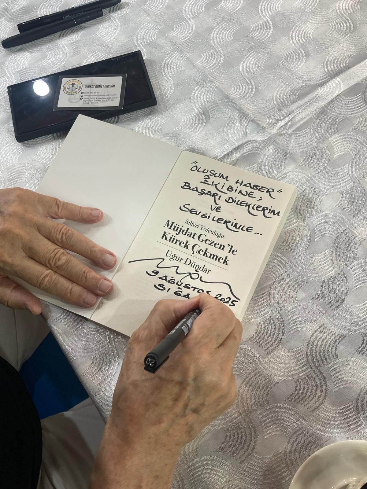 Oluşum Haber muhabiri İrem Sevim’in katıldığı etkinlikte Dündar, “Oluşum Haber ekibine başarı dileklerim ve sevgilerimle” notunu yazarak imzaladığı kitabını hediye etti.